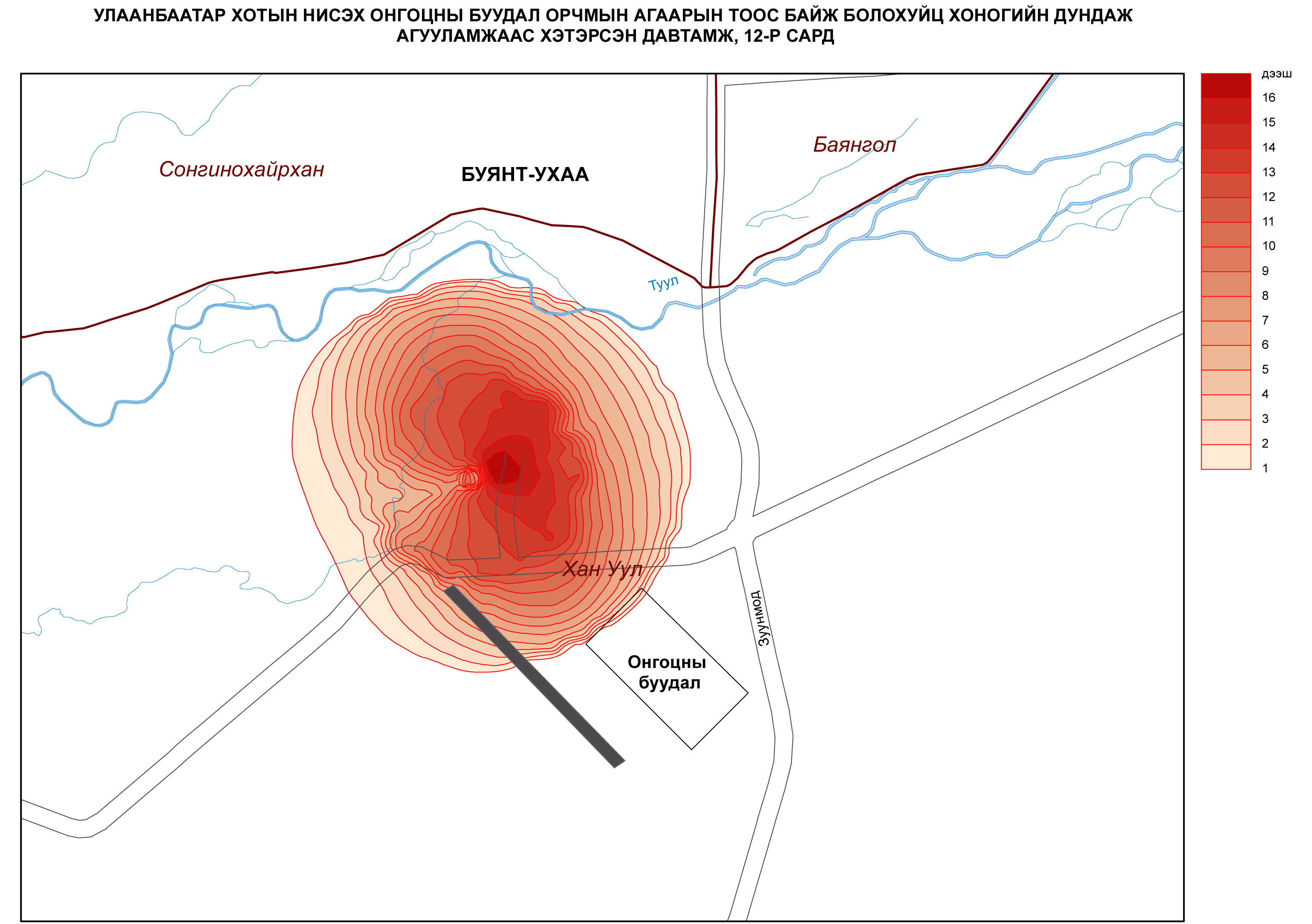 88-2. Улаанбаатар хотын агаар дахь бохирдуулах бодисын агууламж (Баруунаас 5м/с салхитай үед)